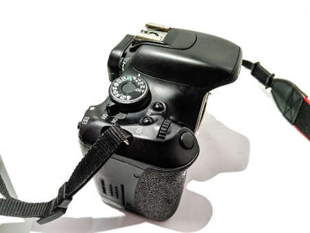 TOMSK, RUSSIA - March 17, 2020: Canon 70D camera on black background. Camera matrix is visible, with dedicated display