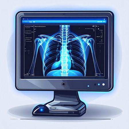 Details with a thoracic X-Ray on a computer monitor inside a clinic