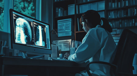 Doctor Xray Imagery Examination on the Laptop Computer.