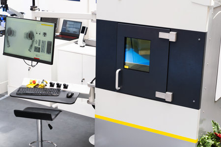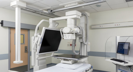 Modern Radiology Equipment with Control Panel and Safety Features.