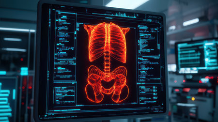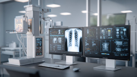 Explore the synergy of technology and medicine in a modern healthcare setting featuring advanced imaging systems for radiology and patient-centric data management.