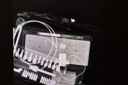 X-ray sensor machine. Baggage check.