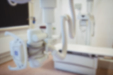 blurred image operating room with X-Ray medical scan in hospital for background, laboratory, cancer and disease treatment, history patient record, medical diagnosis and health care technology concept