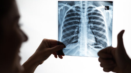 Healthy lungs after pneumonia.Doctor looking at an x-ray. The doctor does an examination of the lungs.