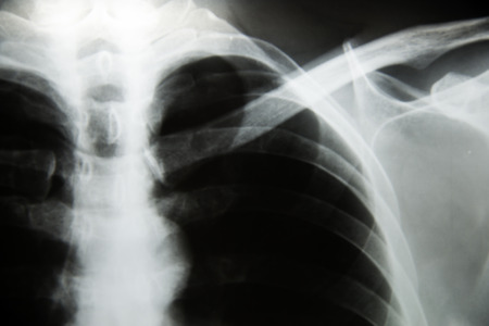 X-ray image of a man with a broken collarbone