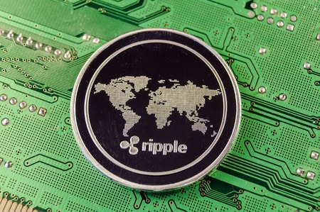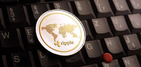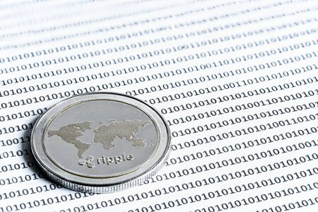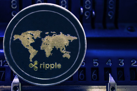 Physical version of Ripple, new virtual money. Conceptual image for worldwide cryptocurrency and digital payment system called the first decentralized digital currency