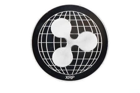 Ripple. xrp Crypto currency silver coin, Macro shot of ripple coin isolated on background, cut out Blockchain technology,
