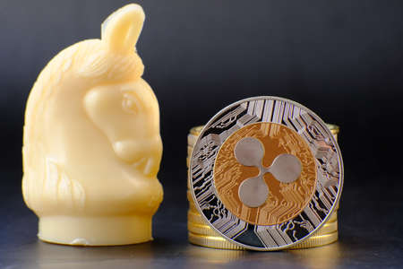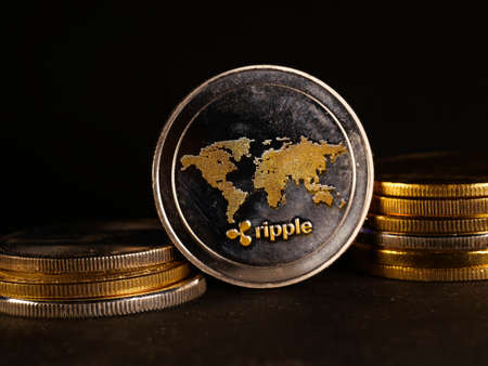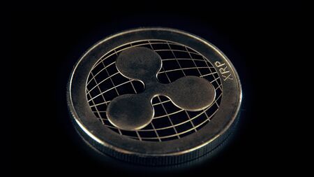 Ripple coin on black background. Currency appreciation.