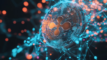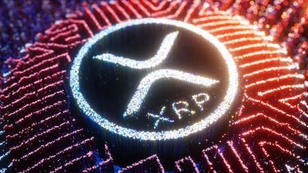 Digital Art XRP Logo Symbol. Ripple Cryptocurrency Futuristic 3D Illustration
