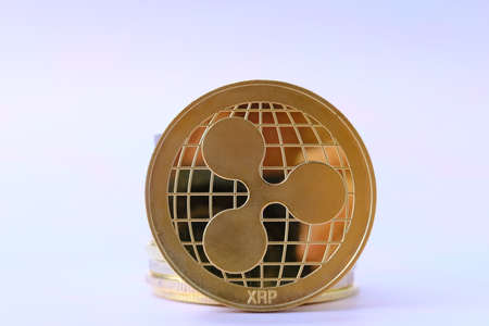 Ripple coin on a white background. Cryptocurrency concept.