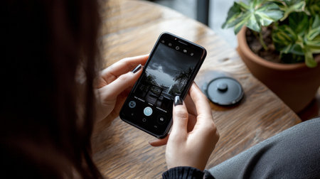 A detailed close-up of hands holding and adjusting a modern camera, captured in soft lighting for a professional look.