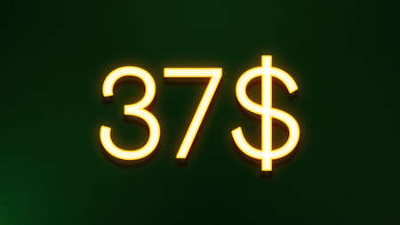 Glowing yellow neon number 37 with dollar symbol on green background. 3d rendering