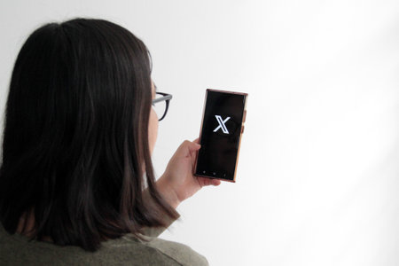 Chiang Mai, Thailand - Aug 14 2023: A female using X new twitter application on her iPhone14. close-up image of a new Twitter X application logo on iPhone14's screen.