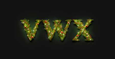 Decorative V W X letters, new year font mockup in darkness