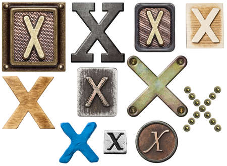 Alphabet made of wood, metal, plasticine. Letter X