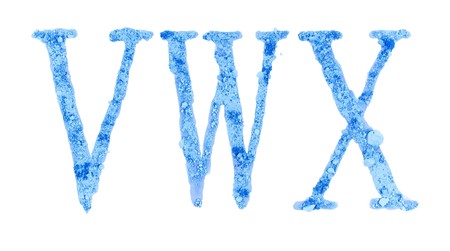 Original font, all alphabet, the crushed blue chalk, letters VWX