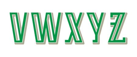 V, W, X, Y, Z green gray letters. Urban artistic font.