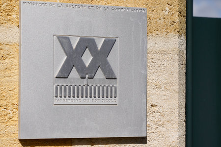 Bordeaux, Aquitaine France - 05 04 2021: Patrimoine du XXe siecle logo and sign in french for old ancient Historic Monument from Ministry of Culture and Communication