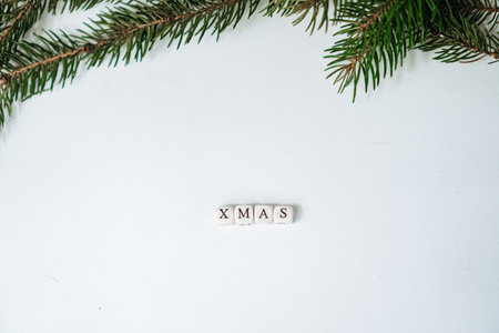 Xmas make by wooden block with Christmas ornament on nature background