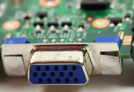 VGA port connector on a video card back extreme close-up