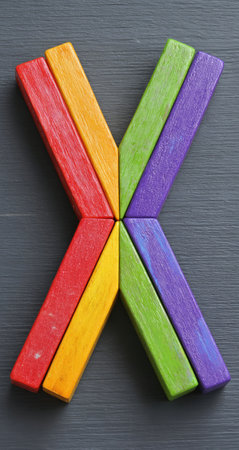 A person holding a building block with an X on it
