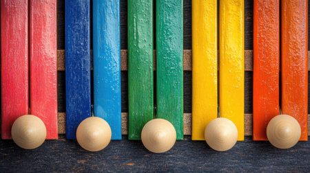 A vibrant wooden xylophone featuring colorful bars designed for children