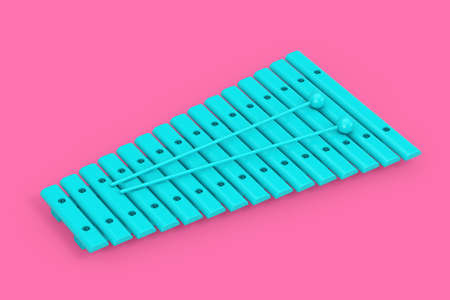 Blue Toy Xylophone with Wands as Duotone Style on a pink background. 3d Rendering