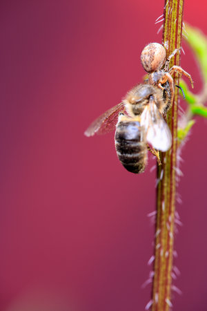The spider caught the bees, a macro image