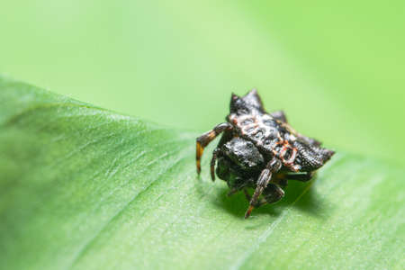 a kind of spider on green leaf in the wild