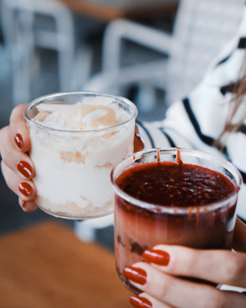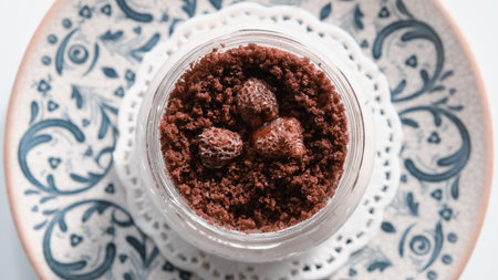 Cinematic dessert close-up showcases vibrant colors and rich textures from an overhead perspective