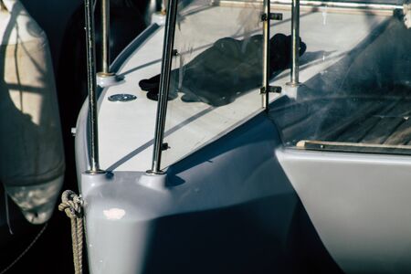 Limassol Cyprus May 14, 2020 Closeup of a boat moored in the marina of Limassol in Cyprus island