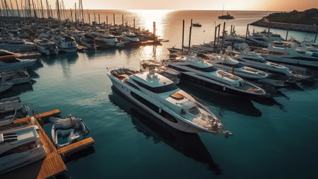Generative AI : Aerial view of yachts docked near Kemer Turkey