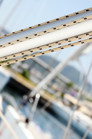 Ropes and knots of sailboat Tackles on the rigging yacht
