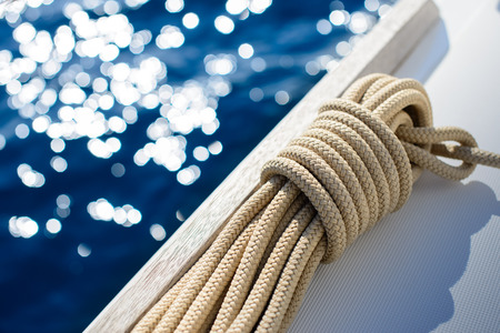 Rope on the deck of a sailing yacht in the sea.