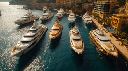 Luxury yachts in resort city port image, ai generated. Comfortable boats for marine cruises photography scene wallpaper. Sea vehicles for tourists entertainment concept photorealistic photo