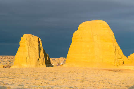 Magnificent sunset over the landscape of Yadan, wonders of the Devil's City on the Gobi Desert