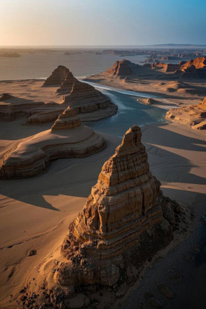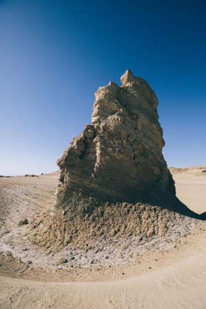 the formation of kaluts or sand stones or yardang in dasht e lut or sahara desert, iran. Nature and landscapes of desert. Middle East desert