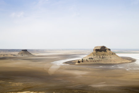 The Ustyurt Plateau. District of Boszhir. The bottom of a dry ocean Tethys. Kazakhstan. selective focus