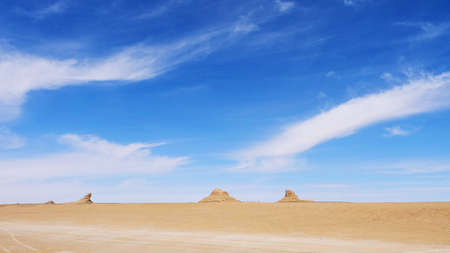 Beautiful landscape view of Yardang landform and sunny blue sky in Dunhuang Gansu China