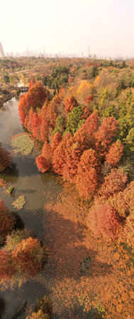 Taichung, Taiwan - November 21th, 2019: cityscape with trees in Taichung Park at Taichung City, Taiwan, Asia