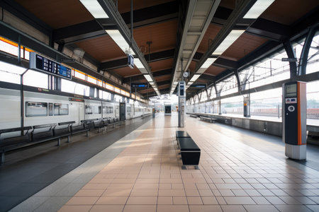 railway station with modern waiting room, benches, and wi-fi, created with generative ai