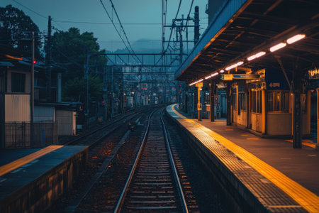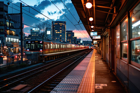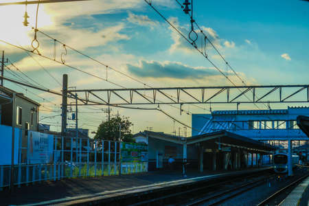 Sunset view with platform of Nishitoya Station. Shooting Location: Saitama Prefecture Tokorozawa City