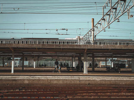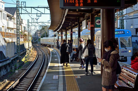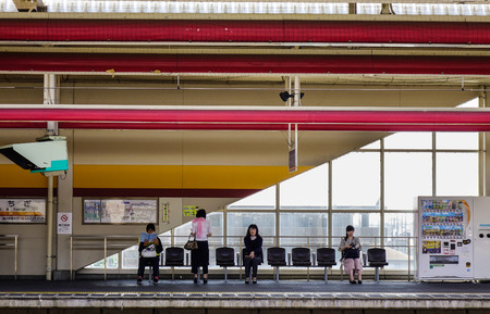 Ashikaga, Japan - May 20, 2017. People waiting for train at railway station in Ashikaga, Japan. Railways are the most important means of passenger transportation in Japan.