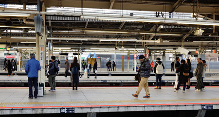 TOKYO, JAPAN - CIRCA APR, 2013: People wait for train arrival on the Japanese rail station at Yamamoto line. The Yamamoto is a railway loop line in Tokyo, Japan,