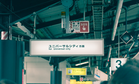 Osaka, Japan - February 2, 2015 : The build board display the way to Universal city station around train station in Osaka , Japan