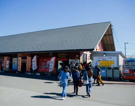 HOKKAIDO, JAPAN : September 21, 2018 - Group of tourists walking to Asahikawa Ramen Village in Hokkaido, Japan.