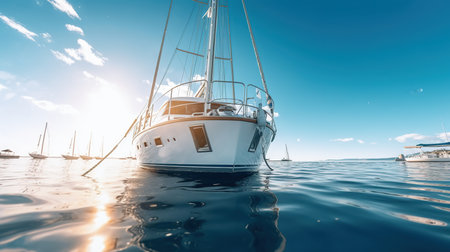 Wide angle shot of front of the yacht in summer time. Generative AI