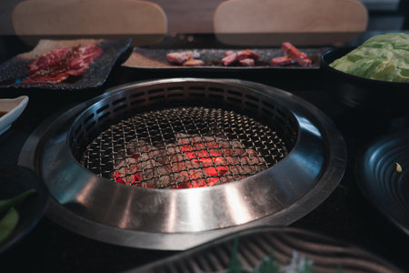 Barbecue Grill Stove Hot Fire, Dining with Yakiniku beef BBQ grill.