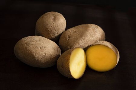 Close up of new potatoes on dark background