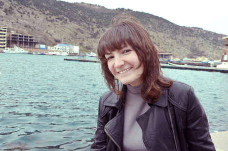 Portrait, young beautiful woman outdoors, sea, nature.